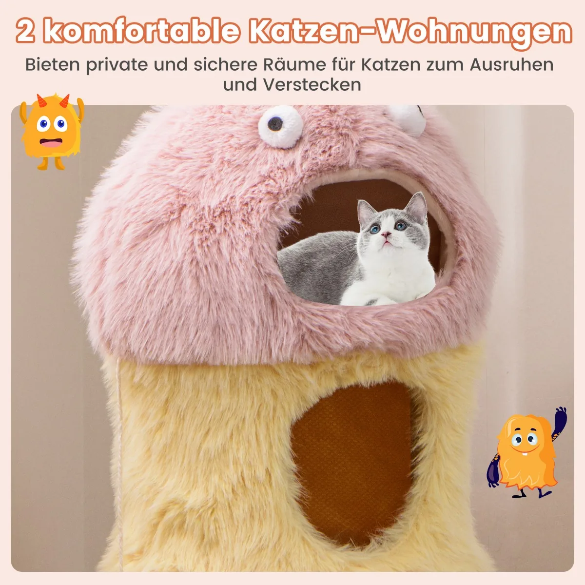 Draskyklė namelis 48x93cm., geltonos/rožinės spalvos – funkcionalus kačių baldų sprendimas jūsų augintiniui. Šis kačių medis sukuria patogias poilsio ir žaidimų zonas, o natūralus sizalis skatina nagų priežiūrą. Dėl minkšto ilgaplaukio audinio ir įdomios konstrukcijos jis puikiai tinka įvairaus amžiaus katėms.