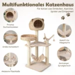 Draskyklė namelis 49,5×49,5×121 cm, smėlio spalvos – tai daugiafunkcis katės medis, skirtas katėms žaisti, ilsėtis ir draskyti nagus. Penkių lygių konstrukcija suteikia įvairių veiklų galimybių jūsų augintiniui, o natūralios medžiagos užtikrina patogumą ir ilgaamžiškumą.