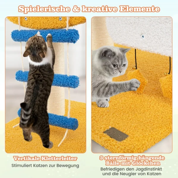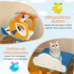 Draskyklė namelis 58,5×48,5×76 cm – funkcionali kačių medžio konstrukcija, skirta natūraliam braižymo elgesiui ir užimtumui. Įvairių spalvų draskyklė su platformomis, kopėčiomis bei interaktyviais žaislais užtikrina katės fizinį aktyvumą ir poilsį.