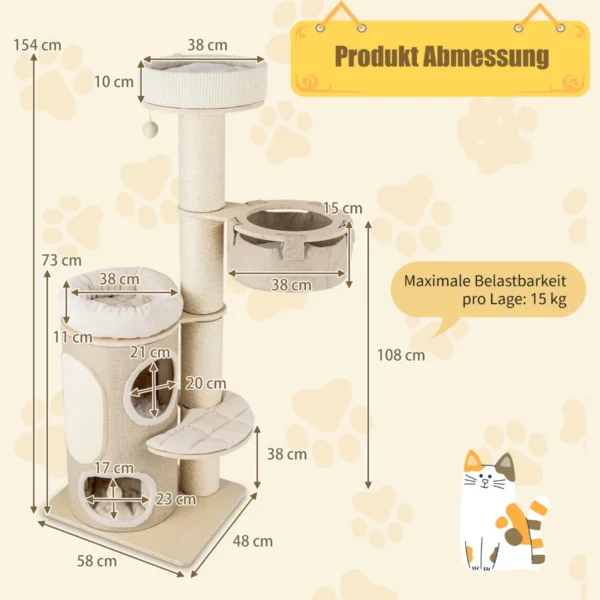 Draskyklė namelis 58x48x154cm, šviesiai rudos ir smėlio spalvos, yra universalus kačių medis, tinkantis kelių kačių šeimoms. Šis daugiafunkcis kačių medis suteikia erdvią poilsio zoną, galimybę braižyti bei saugų žaidimo kampelį jūsų augintiniams.