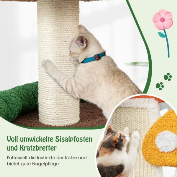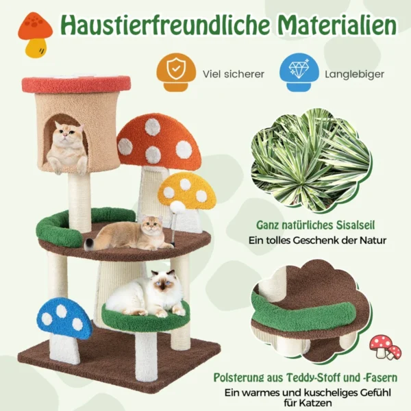 • Grybų formos platformos ir ryškios spalvos įtraukia katės dėmesį ir papildo interjerą.