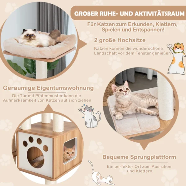 - Keturios platformos ir erdvus kačių urvas suteikia įvairias poilsio ir laipiojimo zonas.