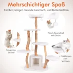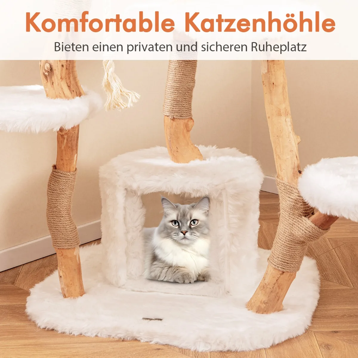 Draskyklė namelis 68x58x168 cm baltos ir šviesiai rudos spalvos – praktiškas ir funkcionalus sprendimas jūsų katei. Šis kačių medis suteikia stabilų pagrindą žaidimams, poilsiui ir nagų galandimui natūraliomis medžiagomis.