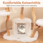 • Įrengtas patogus katės urvas privačiam poilsiui ir jaukus viršutinis guolis stebėjimui.