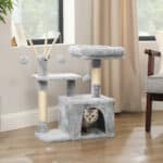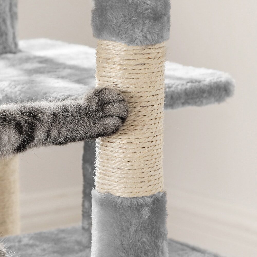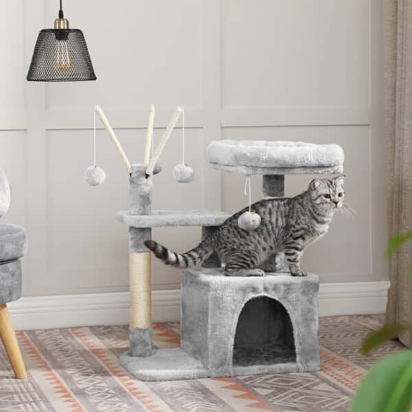 Jūsų katė pastebi nepasiekiamą vietą. Jei katės urvas būtų pažeistas, prašome laiku pataisykite arba pakeiskite, kad išvengtumėte sužeidimų dėl sulūžusių dalių. Norėdami užtikrinti saugų naudojimą, naudokite pridedamą apsaugą nuo apvirtimo, kad pritvirtintumėte prie sienos.