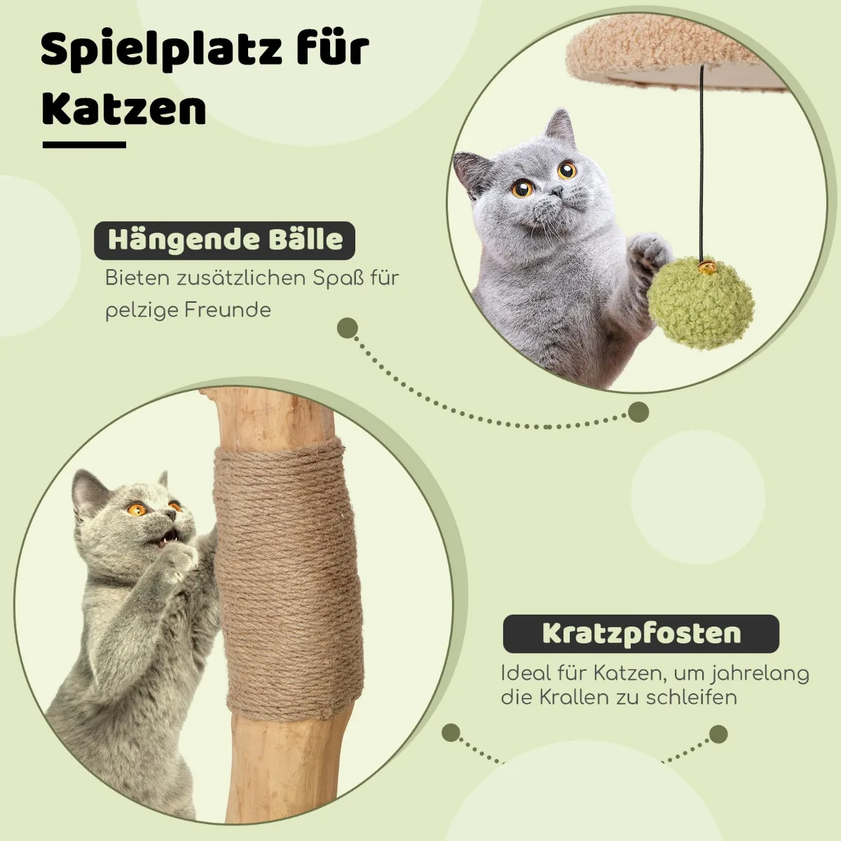 - Džiutu aptraukti stulpai skirti nagų pagalvimui, o trys kabantys kamuoliukai žaidimui ir instinktų tenkinimui.