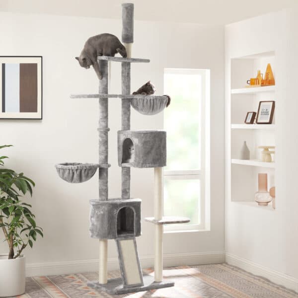 - Dizainas nuo grindų iki lubų katėms, kurios mėgsta aukštus kambarius