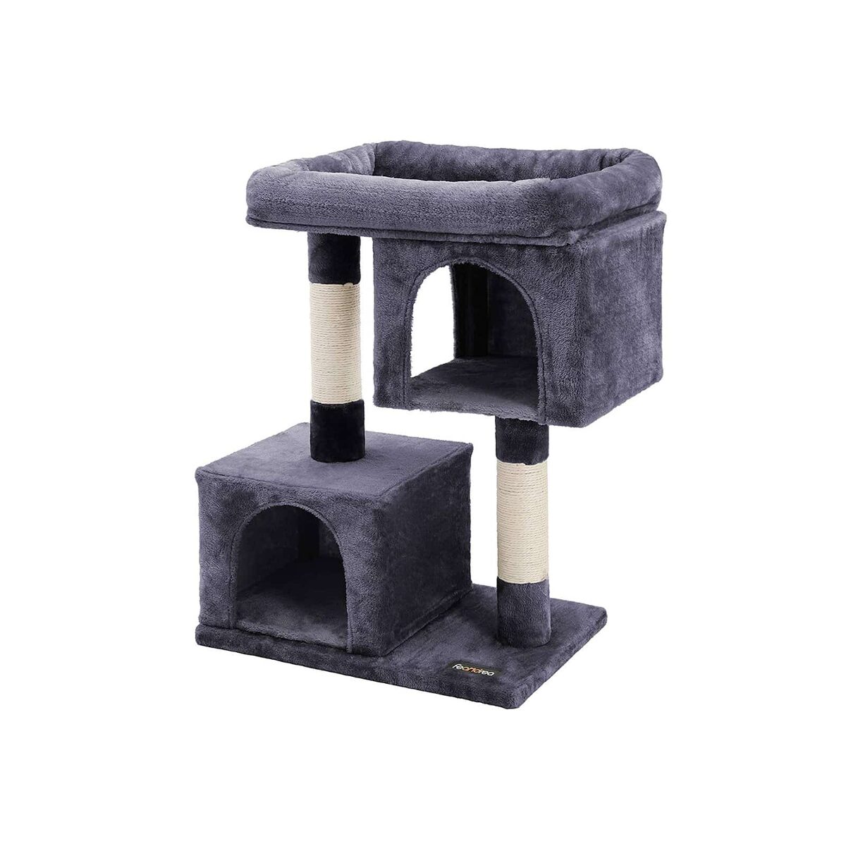 FEANDREA kačių medžiai turi visas funkcijas, kurių reikia, kad jūsų katės klestėtų. RELAX – padidintas viršutinis paviršius su paaukštintu apvadu suteikia prabangaus ilsėjimosi patirtį. SCRATCH – tvirti strypai, padengti natūralia sizalio virve, leidžia katėms pasikasyti nagus ir pasitempti. NAP – dviejų urvų dėka jūsų katės pagaliau gali įlipti į savo lovą ir elgtis taikiai. Be visų linksmybių, jūsų augintinių saugumas yra garantuotas. Stabilumui užtikrinti dugnas sutvirtintas lentjuostėmis; apsaugos nuo apsivertimo įranga taip pat yra, kad galėtumėte pritvirtinti prie sienos. Nesvarbu, ar turite kačiukų, didelių kačių ar vyresnio amžiaus kačių, šis kačių medis taps nuostabiais namais jūsų pūkuotiems draugams.