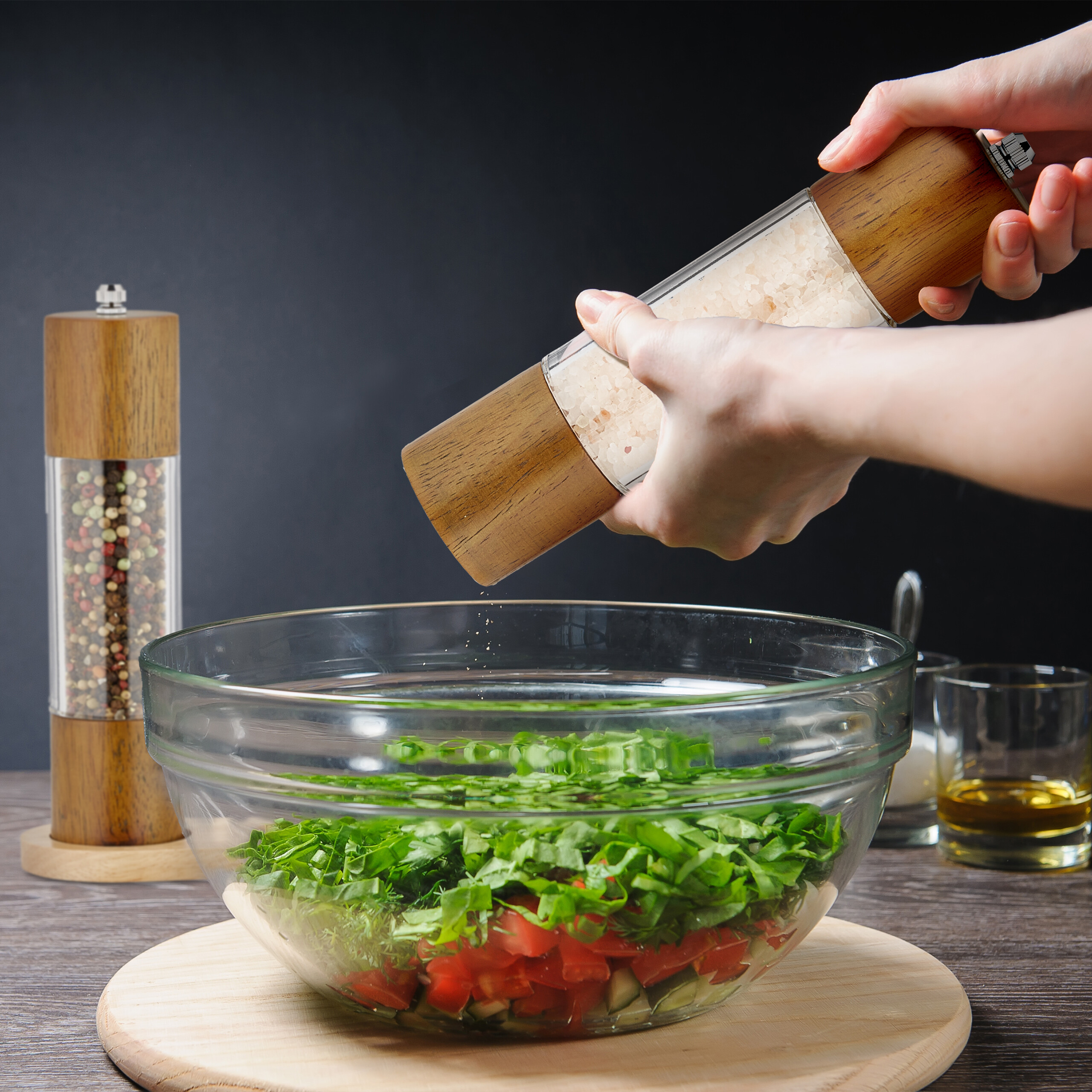 Įneškite į savo virtuvę elegancijos ir funkcionalumo su šiuo išskirtiniu druskos ir pipirų malūnėlių rinkiniu. Šis rinkinys, pagamintas iš natūralių medžiagų, ne tik praturtins jūsų patiekalus, bet ir taps stilingu akcentu jūsų virtuvėje.