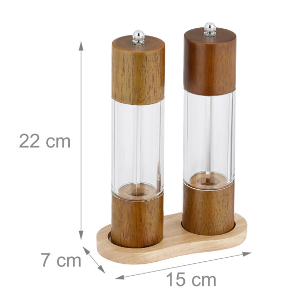 Druskos ir pipirų malūnėlių rinkinys su padėklu 22x15x7., rudos/šviesiai rudos spalvos