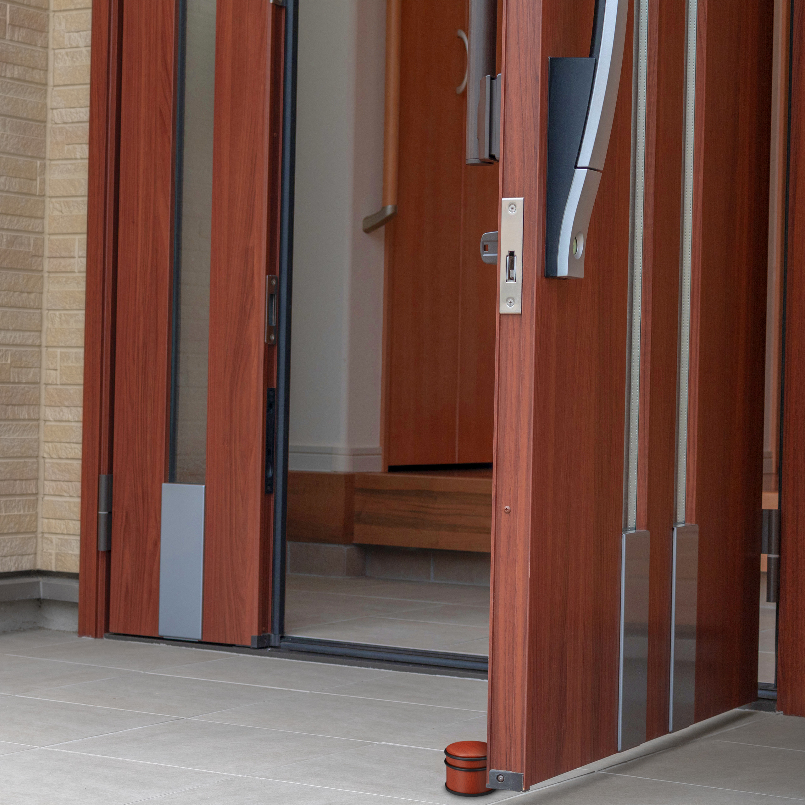 Ši durų atrama ne tik funkcionali, bet ir estetiškai patraukli, su medinės išvaizdos apdaila ir ryškia raudona spalva, kuri suteiks jūsų namams išskirtinumo. Pasirinkite kokybę ir stilių su mūsų durų atrama.