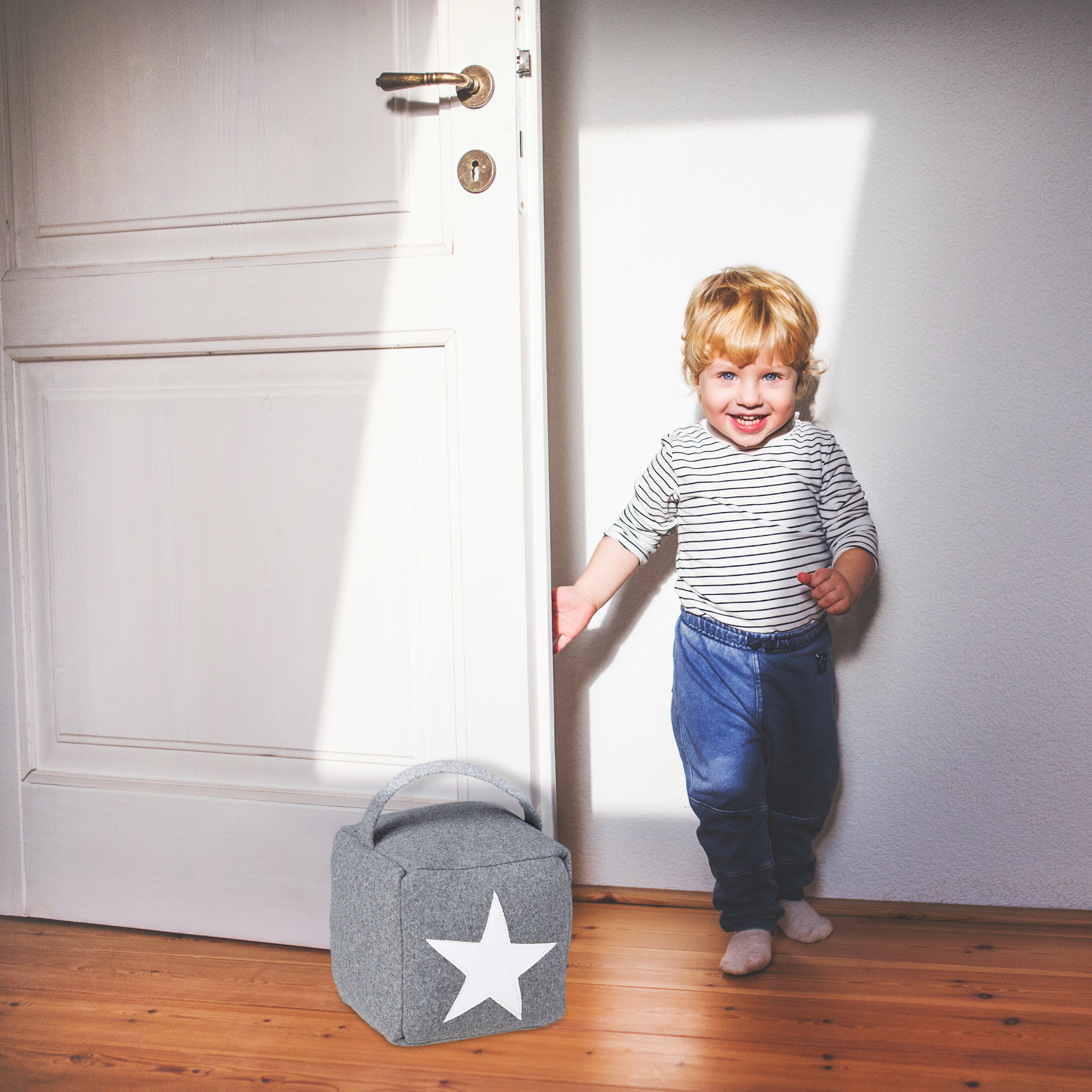 - Patogi rankena: Dėl nedidelės medžiaginės rankenos viršuje, durų atrama gali būti lengvai pakeliama ir perstatoma pagal jūsų poreikius.