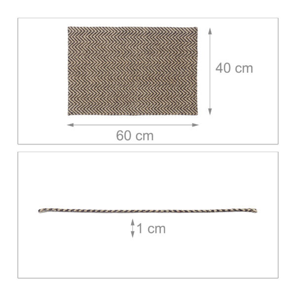 Kiekvienas kilimėlis yra kruopščiai pagamintas rankomis iš patvaraus džiuto. Dėl šios priežasties galimi nedideli matmenų nukrypimai, kurie tik pabrėžia gaminio unikalumą.