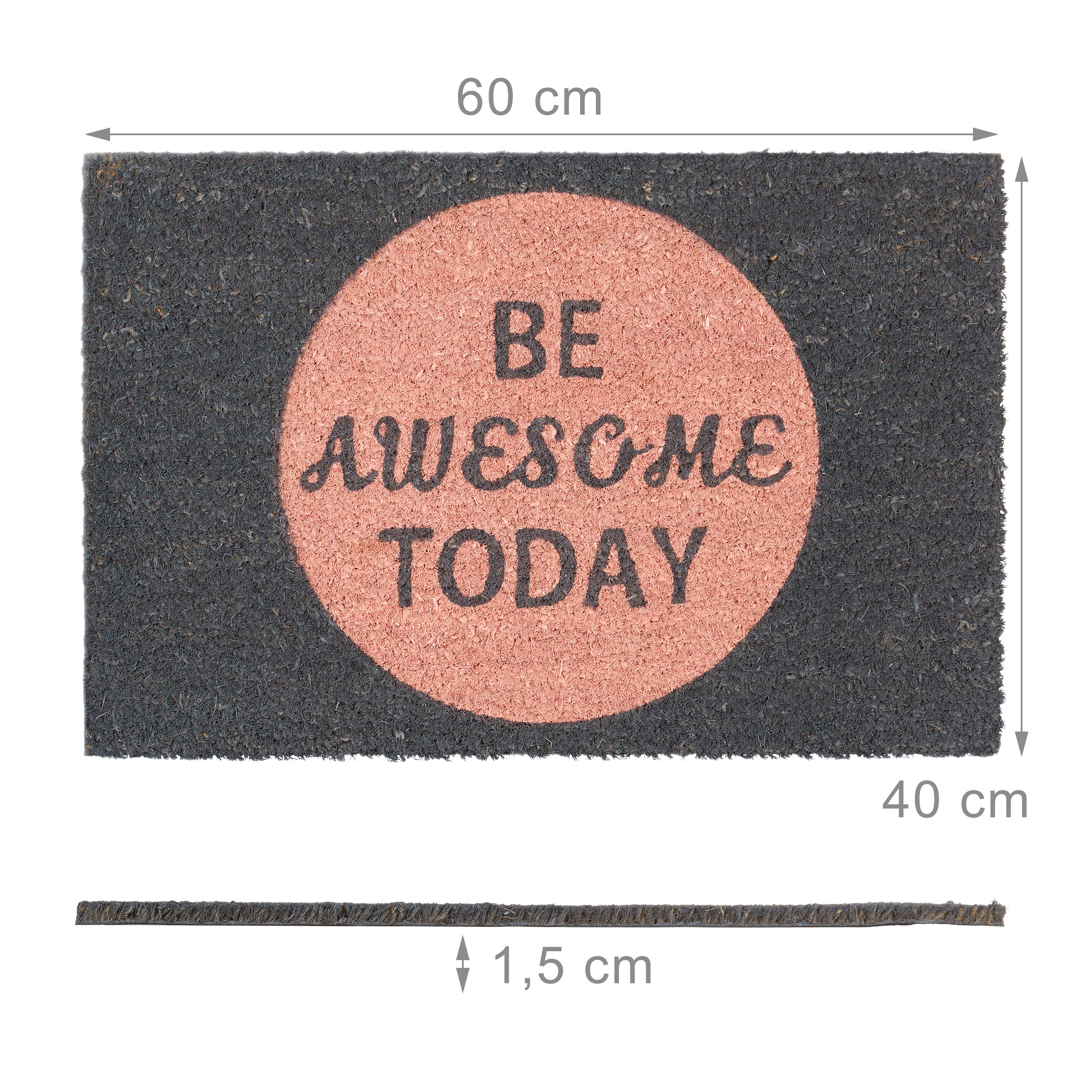 Pridėkite stilingą ir motyvuojantį akcentą prie savo namų įėjimo su durų kilimėliu „Be Awesome Today”. Šis tamsiai pilkos ir rožinės spalvos kilimėlis ne tik puošia jūsų duris, bet ir kasdien primena jums bei jūsų svečiams apie pozityvumą ir siekį būti geriausia savo versija.