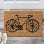 • Originalus dizainas: Juodas dviračio motyvas išsiskiria ant natūralios rudos spalvos kilimėlio, suteikdamas jam išskirtinumo ir žavesio. Puikus pasirinkimas dviračių entuziastams!