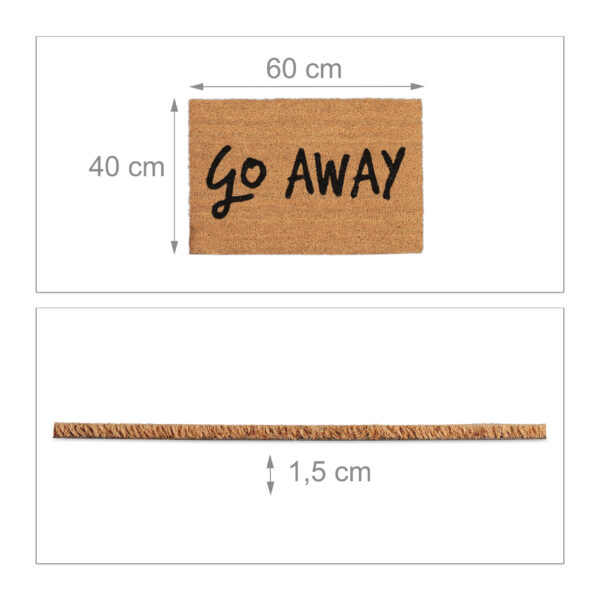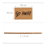 Pasitikite savo svečius su šypsena ir šiek tiek ironijos! Durų kilimėlis „Go Away” yra ne tik praktiškas, bet ir nuotaikingas būdas išreikšti savo asmenybę. Šis kilimėlis, pagamintas iš kokoso pluošto, yra puikus pasirinkimas tiems, kurie vertina natūralumą ir aplinkos tausojimą.
