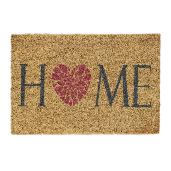 - Unikalus dizainas: „Home” raidės ir širdies atspaudas suteikia kilimėliui jaukumo ir kviečia svečius jaustis laukiamiems.