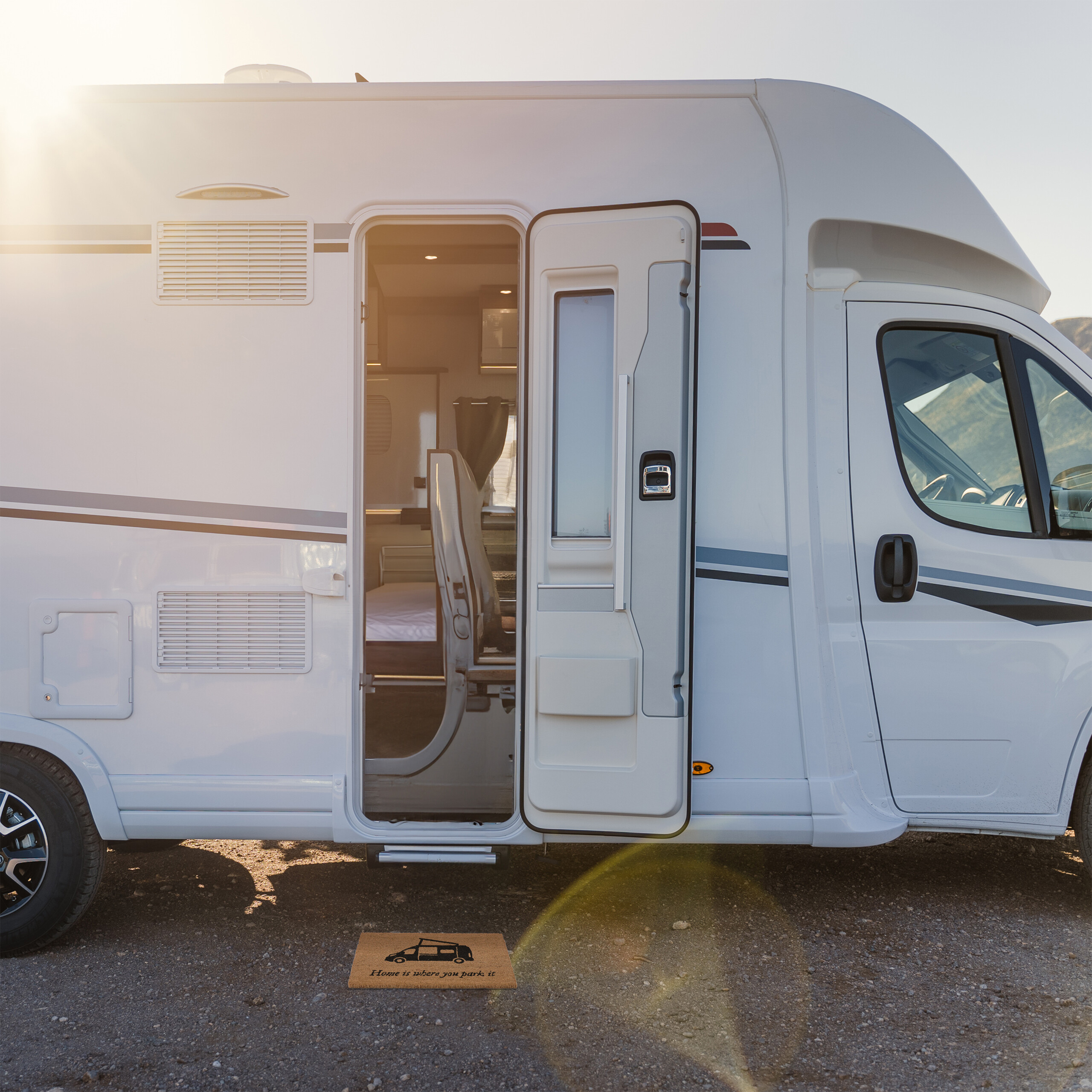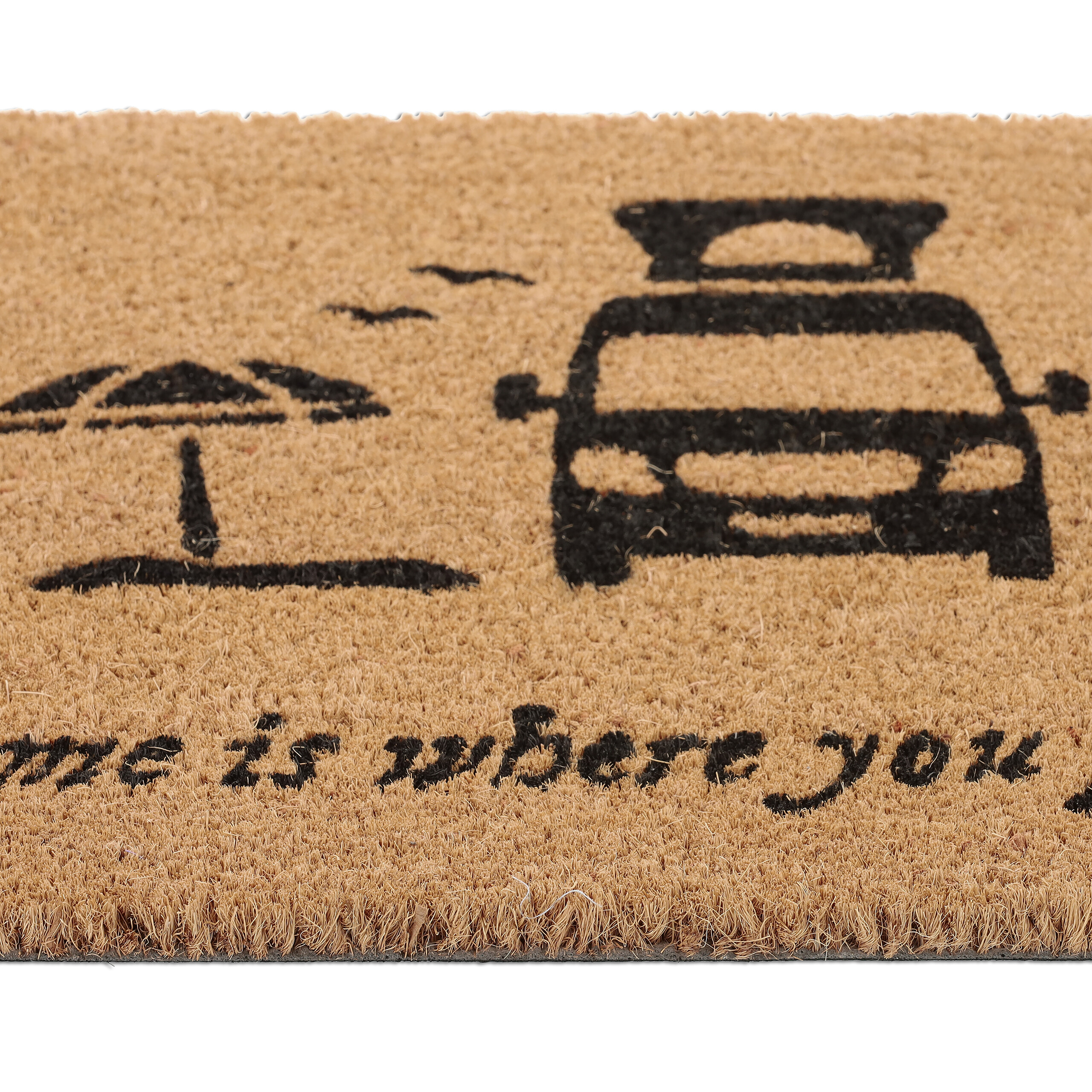 Pasitikite savo svečius su šypsena ir stiliaus pojūčiu, naudodami šį unikalų durų kilimėlį su stovyklavimo motyvais. Kilimėlis „Home is where you park it” yra puikus pasirinkimas tiems, kurie vertina nuotykius ir laisvę.