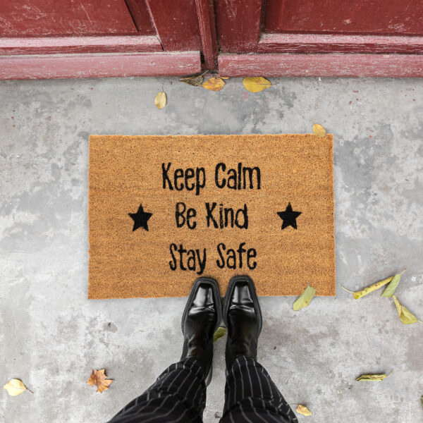 Durų kilimėlis „Keep calm, Be kind, Stay safe” – 60×40 cm