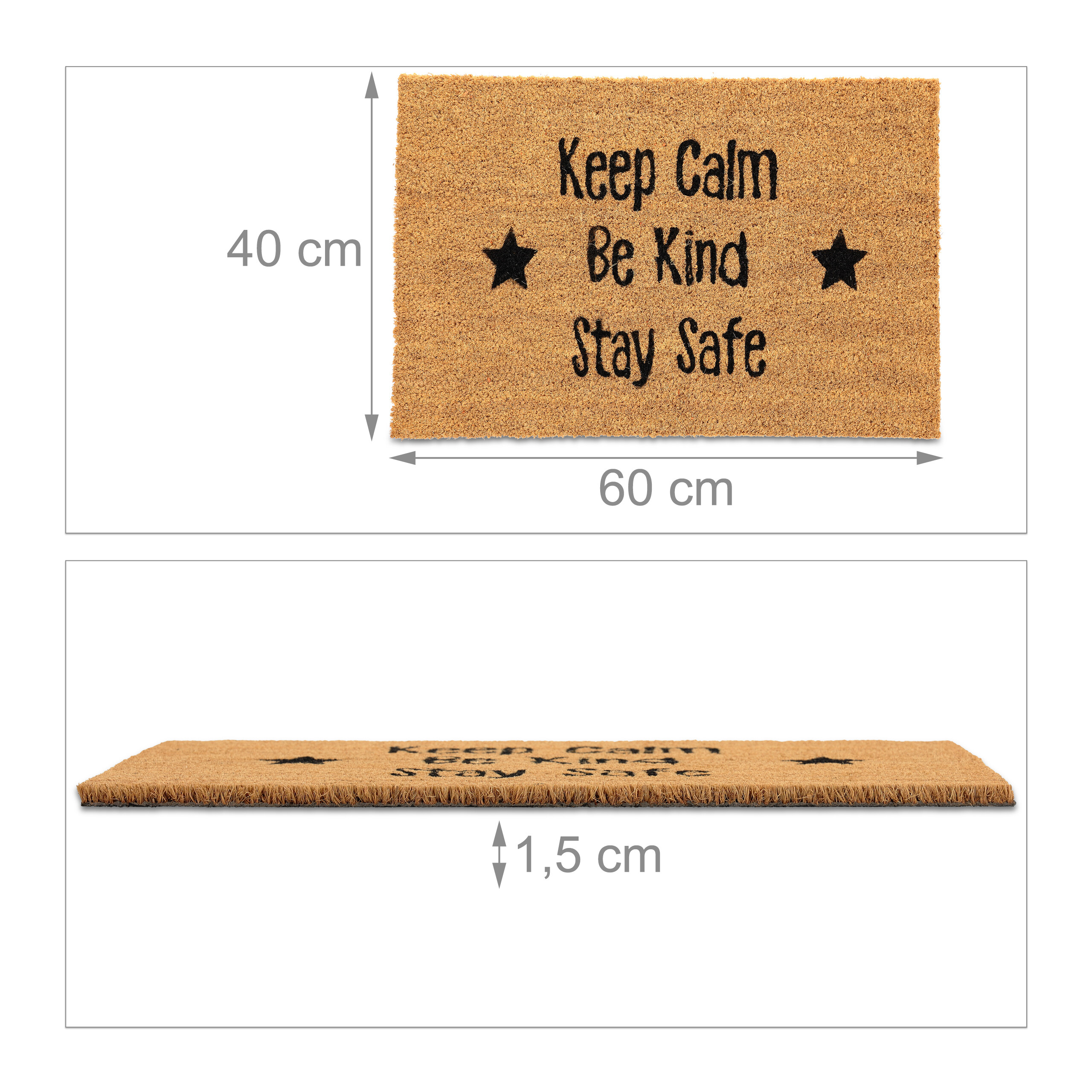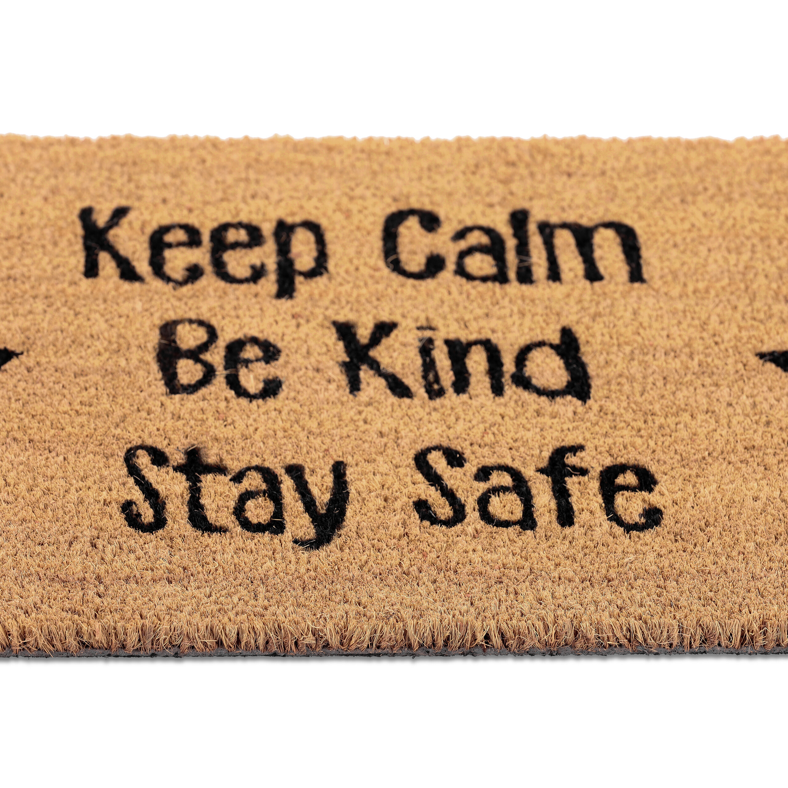Šis durų kilimėlis su užrašu „Keep Calm. Be Kind. Stay Safe” yra ne tik praktiškas, bet ir stilingas sprendimas jūsų namams. Kokoso pluoštas užtikrina tvirtumą ir atsparumą oro sąlygoms, todėl kilimėlis puikiai tinka naudoti tiek prie buto durų, tiek prie namų įėjimo ar terasoje.