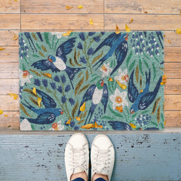 Durų kilimėlis „Kregždės” 60×40 cm, mėtinės/mėlynos spalvos