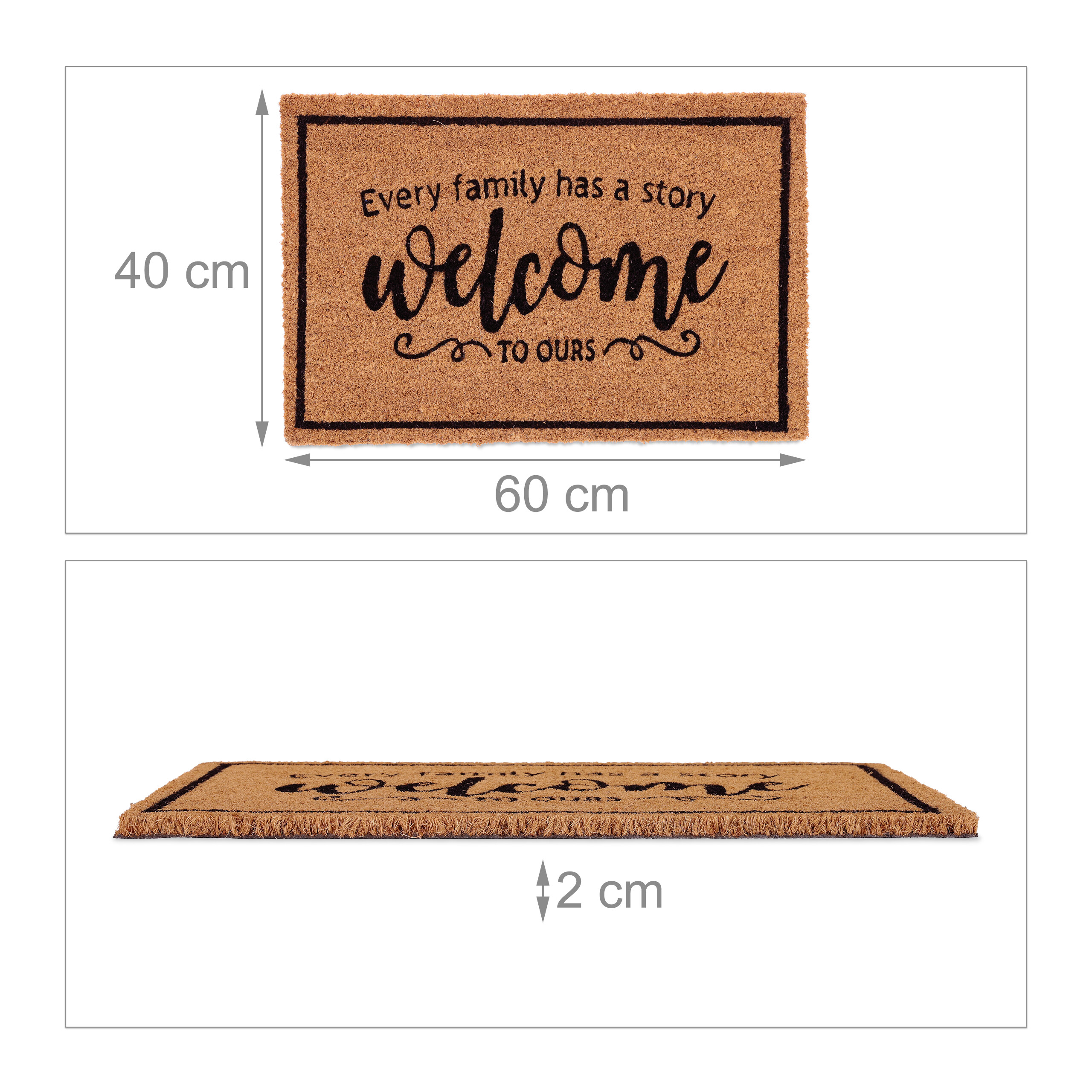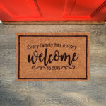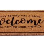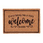 • Unikalus dizainas: Kilimėlis su užrašu „Kiekviena šeima turi istoriją, sveiki atvykę į mūsų“ suteikia asmeniškumo ir šilumos jūsų namų įėjimui.