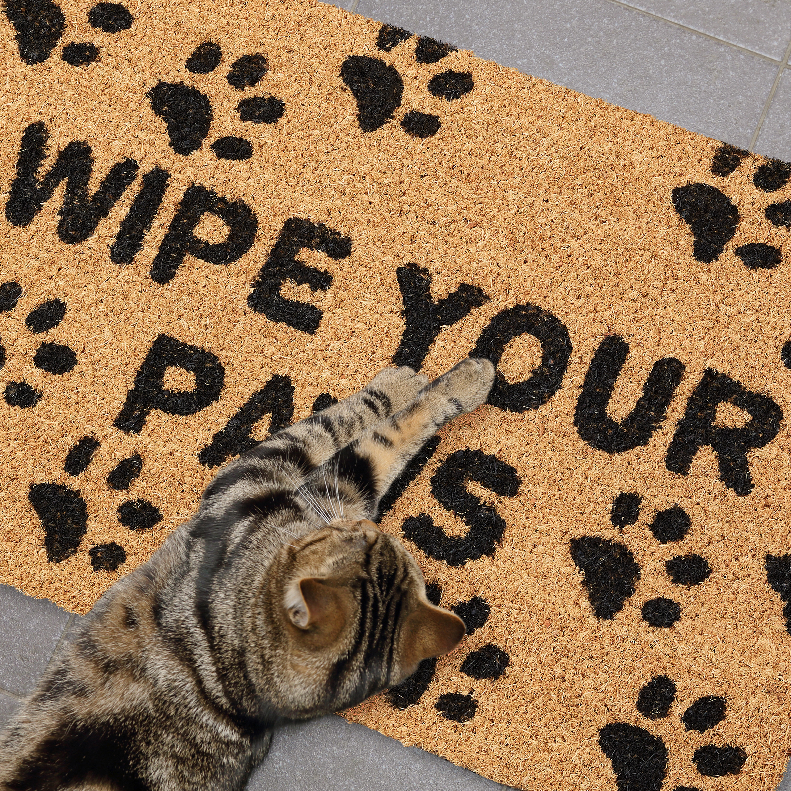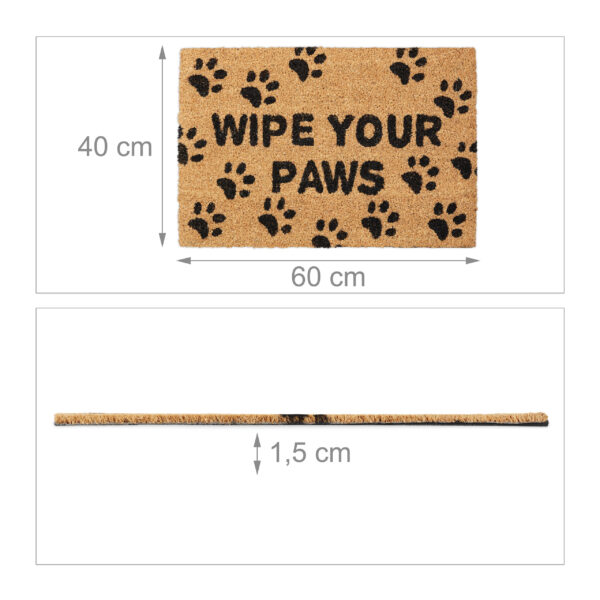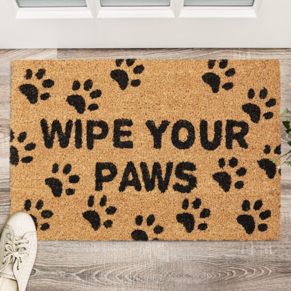 • Juokingas dizainas: Kilimėlis su užrašu „Wipe Your Paws” neabejotinai privers nusišypsoti kiekvieną, kuris peržengs jūsų slenkstį.
