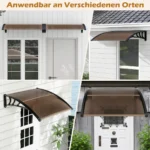 Durų stogelis 122x99x28cm rudos ir juodos spalvos užtikrina patikimą apsaugą nuo lietaus, sniego ir saulės. Šis polikarbonato baldakimas saugo langus ir duris, išlaikydamas įėjimą sausą ir švarų.