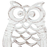 Dizainas: Miela pelėda, sėdinti ant geležinio varpo, stebi įėjimo zoną