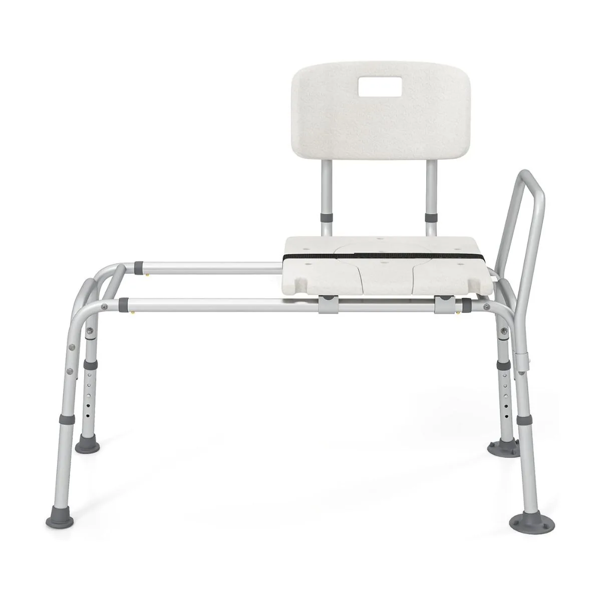 - Be įrankių reguliuojama dušo kėdė su šoniniais turėklais ir saugos diržu saugesniam naudojimui.