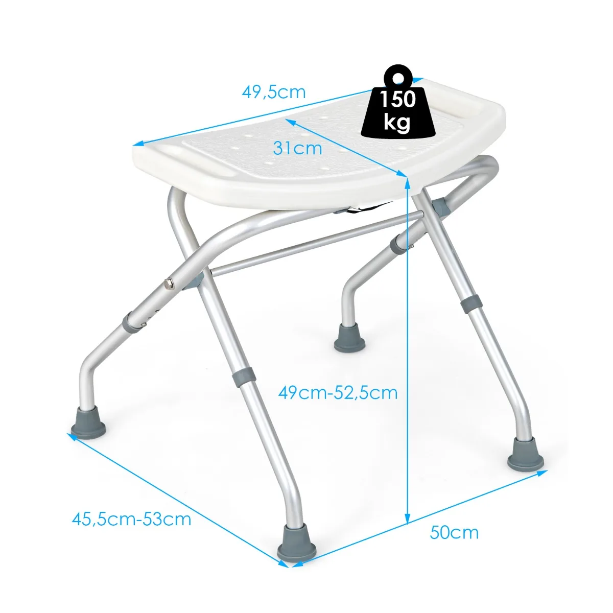 Dušo kėdė 53x50x52,5 cm baltos ir sidabrinės spalvos skirta saugiam ir patogiam sėdėjimui duše ar vonioje. Tinkama pagyvenusiems žmonėms, neįgaliesiems ir tiems, kuriems reikalinga pagalba maudantis. Reguliuojamo aukščio ir lengvos konstrukcijos dušo kėdė užtikrina stabilumą ir saugumą.