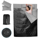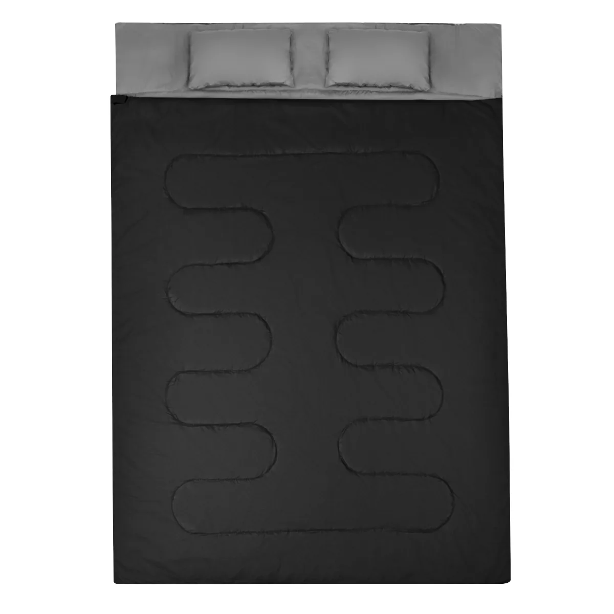 Dvigubas miegmaišis 220x150cm juodos ir pilkos spalvos skirtas patogiam miego sprendimui lauke dviem žmonėms. Šis miegmaišis ypatingas tuo, kad jį galima naudoti ir kaip vieną didelį miegmaišį porai, arba atsiskirti į du atskirus miegmaišius. Lengvas nešiojimo krepšys užtikrina patogų transportavimą kelionėse ar stovyklavime.