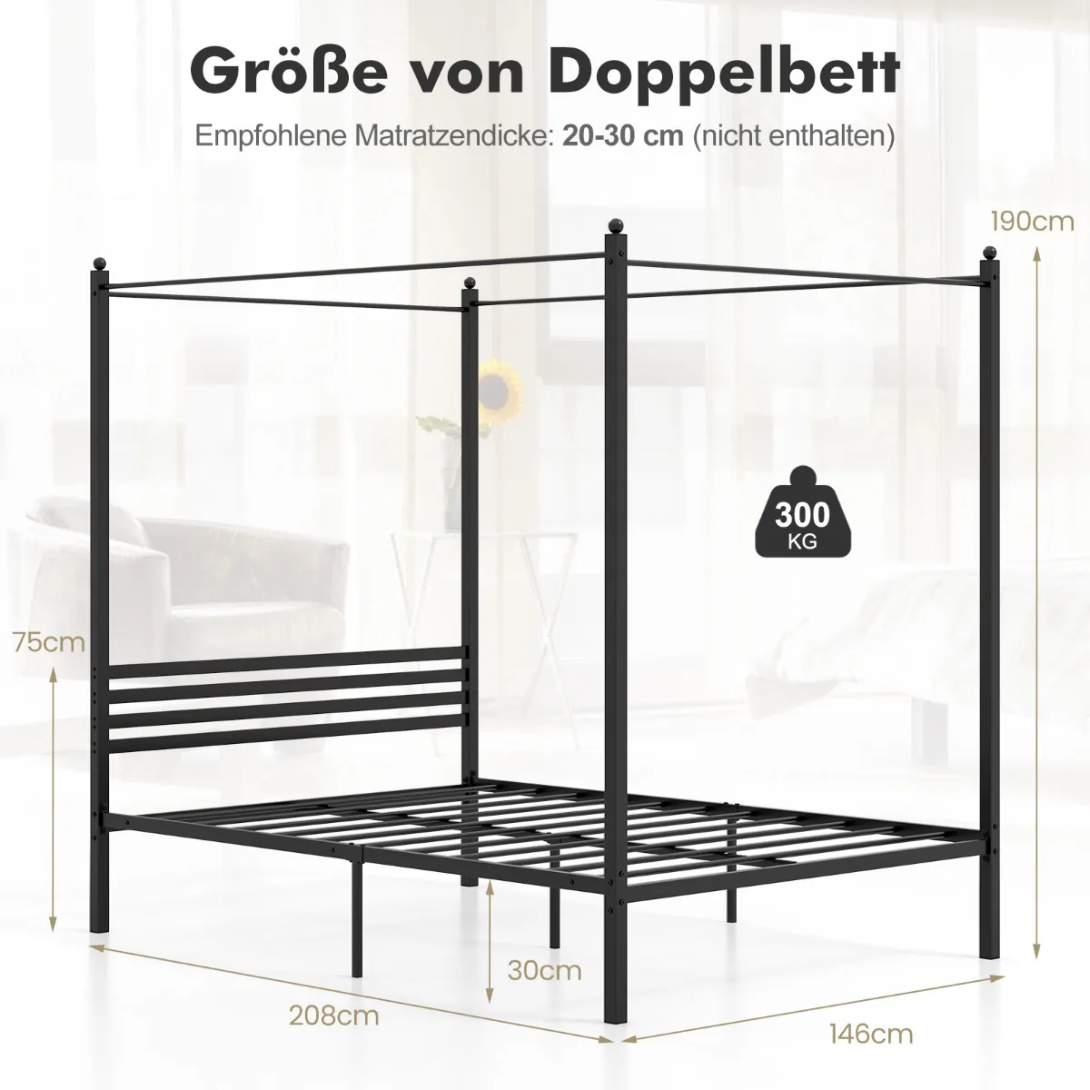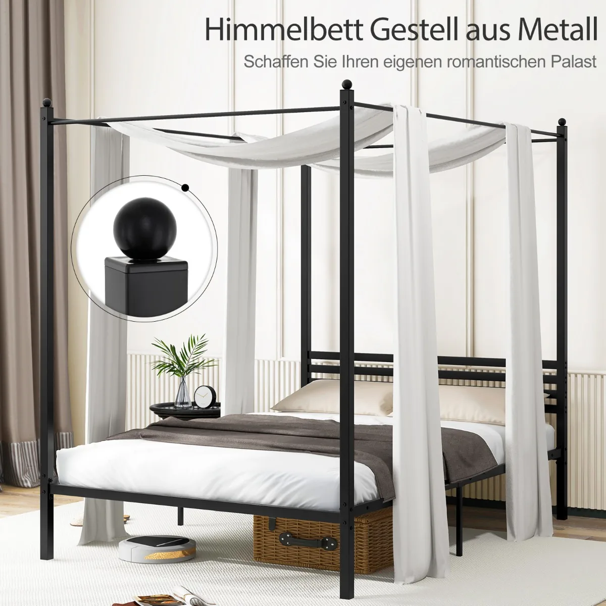 Dvigulės lovos rėmas 208x146x190 cm tamsiai pilkos spalvos yra metalinis lovos su baldakimu rėmas, skirtas patogiam miegui ir erdvės taupymui. Metalinė konstrukcija užtikrina tvirtumą ir ilgaamžiškumą, o galimybė pakabinti užuolaidas prie stulpų praplečia estetines galimybes jūsų miegamajame.