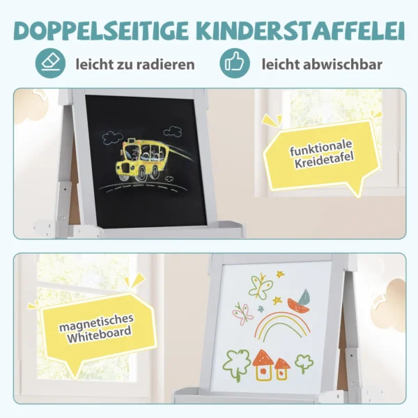 - Dvipusė piešimo lenta su praktine lenta ir magnetine lenta.