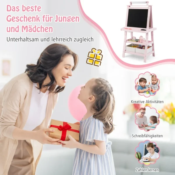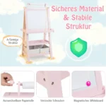 Dvipusė piešimo lenta 59x50x117cm, įvairių spalvų, suteikia vaikams erdvę kūrybiškumui ir lavina meninius gebėjimus. Šis molbertas skirtas piešti kreida, žymekliais ar popieriaus ritiniu, todėl tinkamas įvairiems piešimo būdams ir vaikų grupelėms. Patogi konstrukcija ir saugios medžiagos užtikrina stabilumą ir komfortą naudojant.