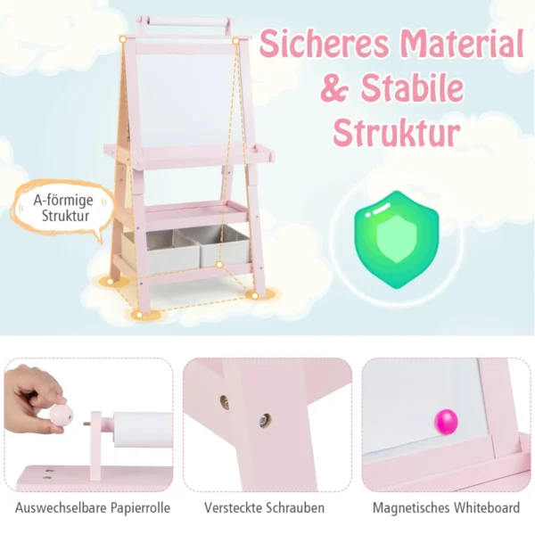 - Trikampės konstrukcijos dėka molbertas yra stabilus ir saugus vaikams.