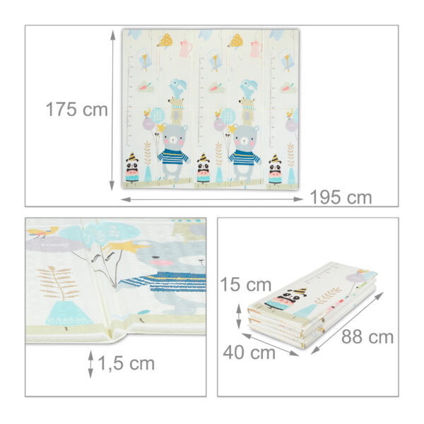 Pristatome didelį ir spalvingą dvipusį žaidimų kilimėlį, kurio matmenys 1,5x195x175 cm. Šis kilimėlis yra puikus pasirinkimas tiek mergaitėms, tiek berniukams, norintiems išlieti savo žaismingą energiją ir lavinti vaizduotę. Kilimėlis yra baltos, mėlynos ir šviesiai rudos spalvos, todėl puikiai derės prie bet kokio interjero.