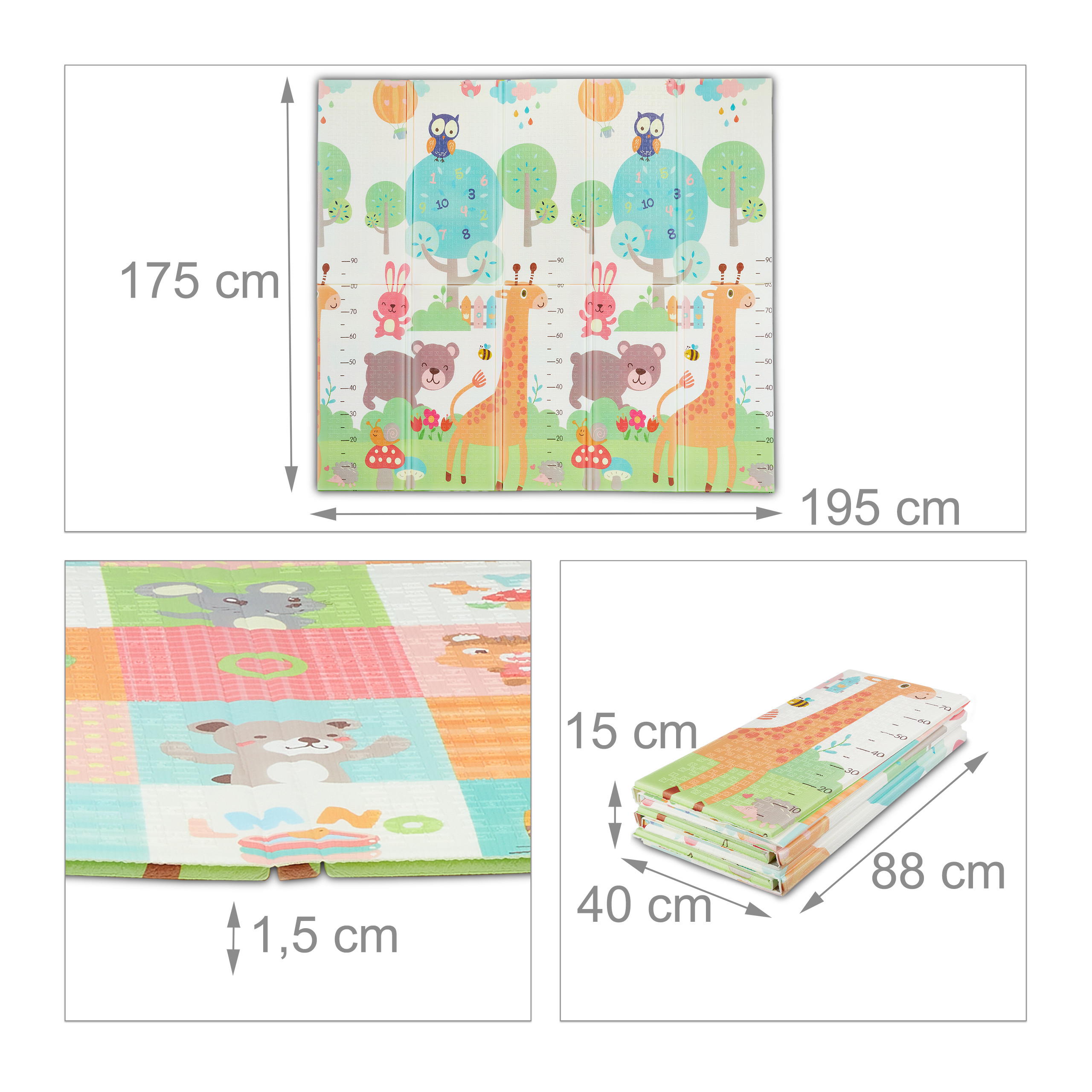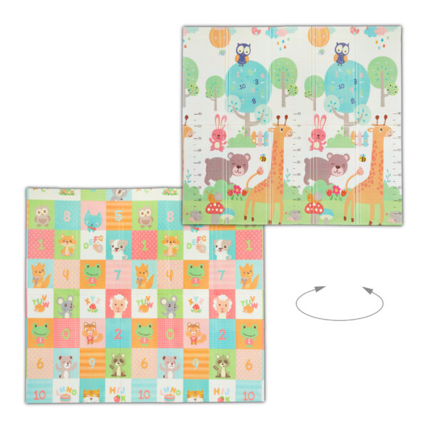 Šis dvipusis kilimėlis yra puikus pasirinkimas mažiems vaikams ir kūdikiams, kurie mėgsta žaisti ir šliaužioti ant grindų. Su gyvūnų motyvais iš abiejų pusių, šis kilimėlis ne tik apsaugo nuo šaltų grindų, bet ir suteikia patogų bei saugų žaidimo paviršių.