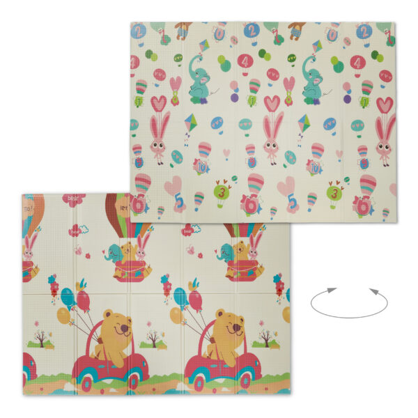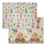 Dvipusis dizainas: Kilimėlis dekoruotas mielais gyvūnų motyvais iš abiejų pusių, kurie patiks tiek berniukams, tiek mergaitėms.