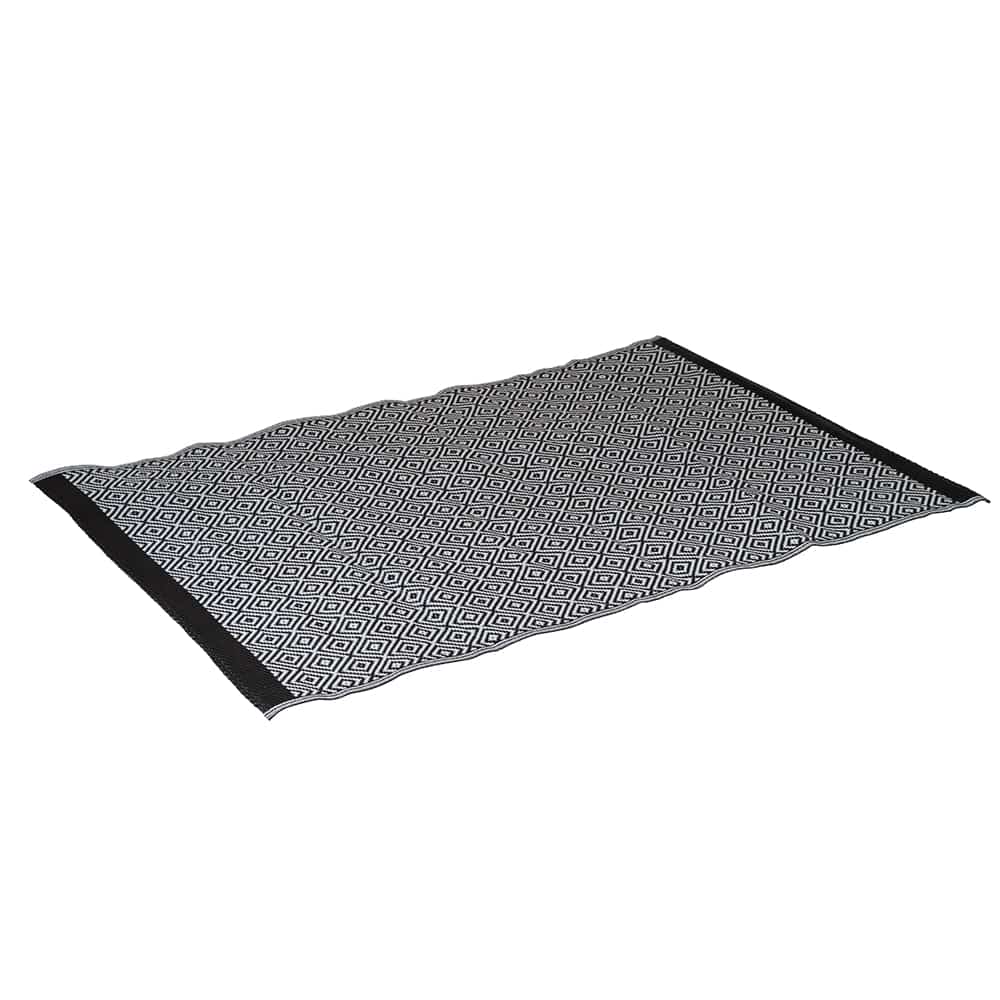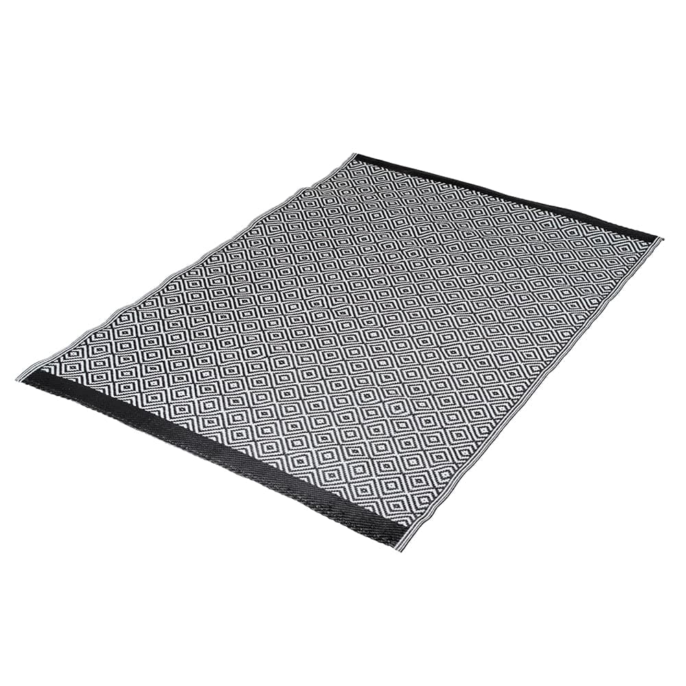 Dvipusis iškylos kilimėlis, atsparus vandeniui ir fungicidinis. Puikiai tiks kaip kilimėlis iškyloje arba kaip kilimas palapinėje. Lengvas ir patogus, jį lengva suvynioti ir transportuoti. Sulenktas užima mažai vietos. Pagaminta iš 100% polipropileno. Atsparus UV spinduliams. Produkto informacija: Matmenys: 180 x 120 cm Medžiaga: polipropilenas 380gr / m2 Spalva: juoda ir balta Išmatavimai sulankstyti: 120x10cm Svoris: 1 kg