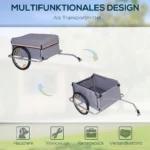 Dviračiu galite gabenti daug. Labai lengva su HOMCOM krovinine priekaba. Universalus priekabos kablys tinka beveik kiekvienam dviračiui, jį galima greitai pritvirtinti ir vėl nuimti. Tvirtas plieninis rėmas leidžia apkrauti iki 40 kg. Su 20 colių padangomis priekabą vis tiek lengva vilkti net ir visiškai pakrautą, o ratlankių atšvaitai užtikrina geresnį matomumą.