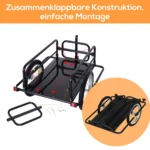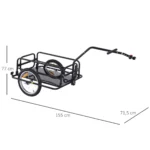 Dviračiu galite gabenti daug. Labai lengva su HOMCOM krovinine priekaba. Universalus priekabos kablys tinka beveik kiekvienam dviračiui, jį galima greitai pritvirtinti ir vėl nuimti. Tvirtas plieninis rėmas leidžia pakelti iki 36 kg apkrovą. Su 16 colių padangomis priekabą vis tiek lengva vilkti net ir visiškai pakrautą, o ratlankių atšvaitai užtikrina geresnį matomumą.