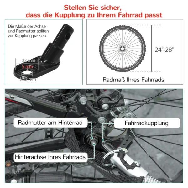 - ✔ Pastaba:1, Priekaba tinka nuo 24″ iki 28″ dviračiams