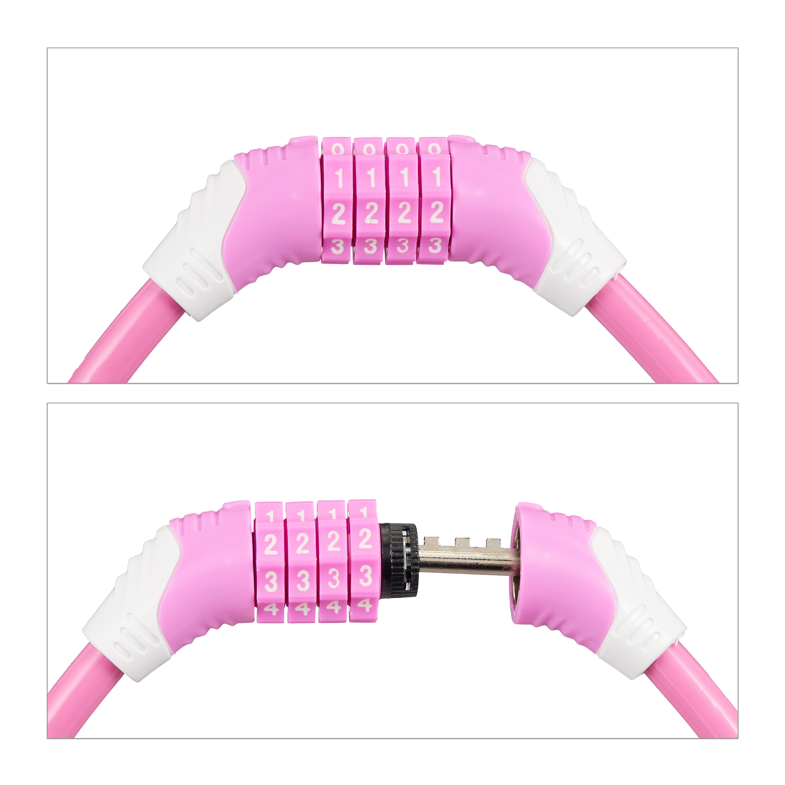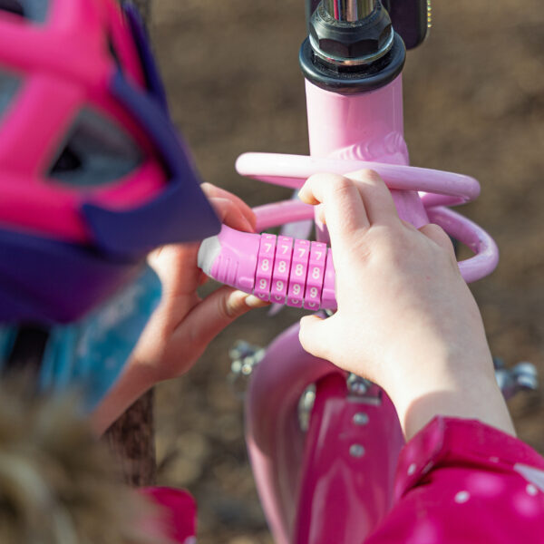 Dviračio spyna su kodu 70cm, rožinės spalvos