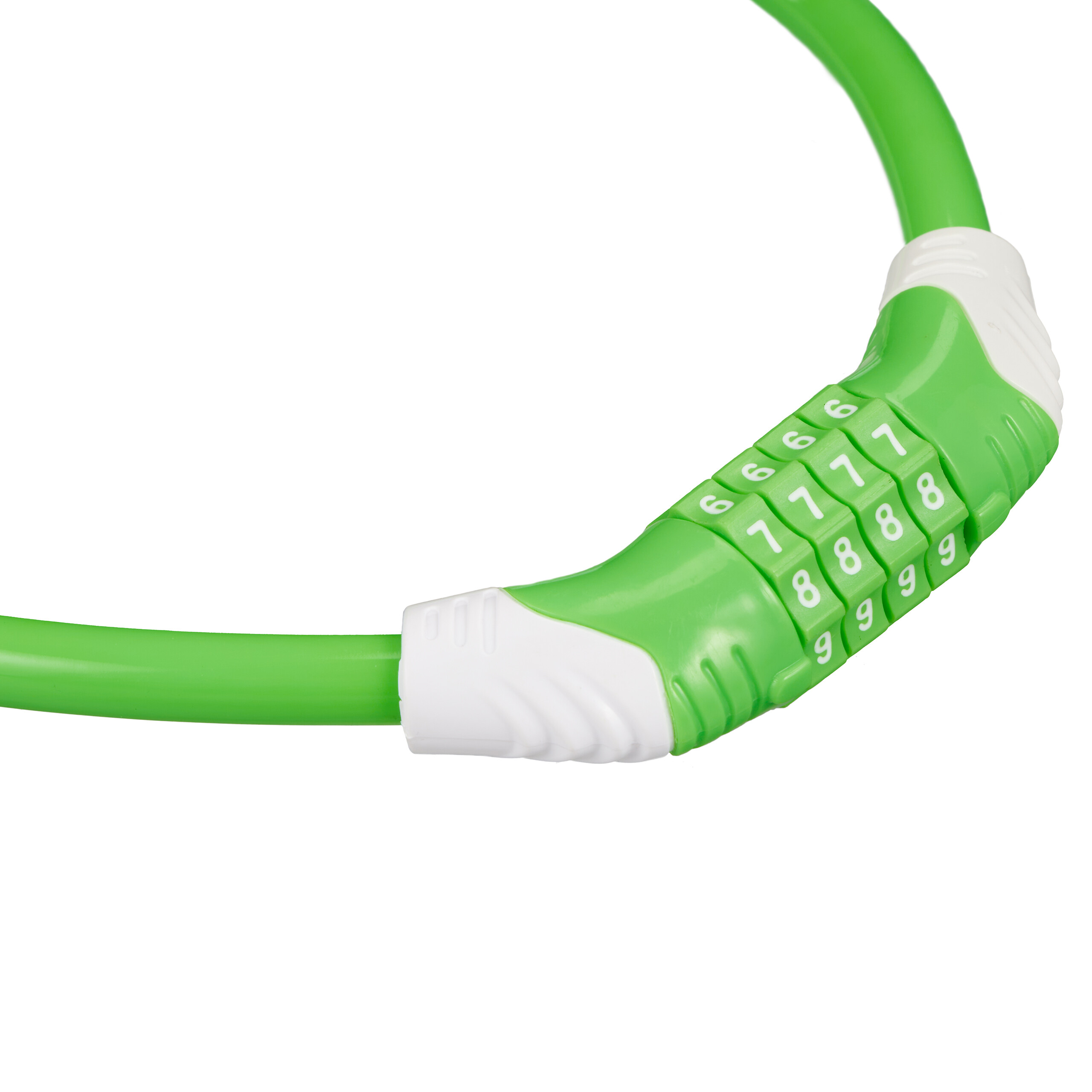 Ieškote patikimos apsaugos vaikiškam dviračiui ar paspirtukui? Ši kabelinė spyna su kodu yra puikus pasirinkimas, užtikrinantis saugumą ir patogumą. Ryškiai žalios spalvos spyna ne tik apsaugos jūsų vaiko transporto priemonę, bet ir taps stilingu akcentu.