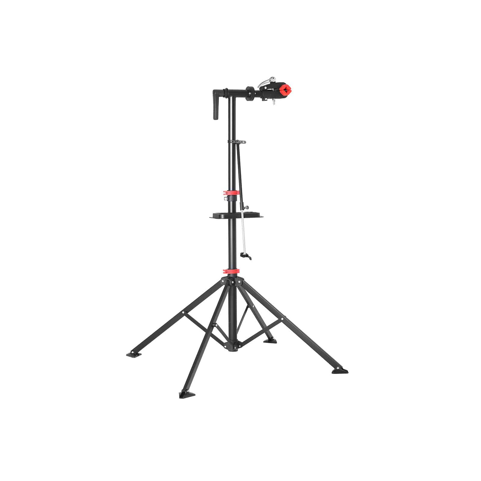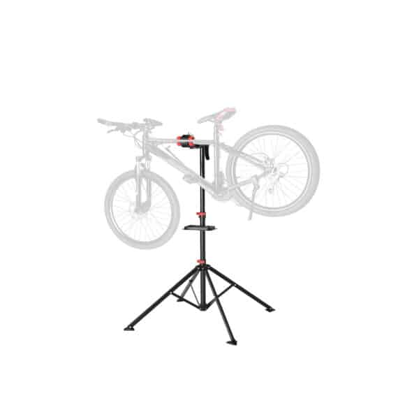 Platus funkcionalumas: Į šį remonto stovą galima pakrauti olandiškus dviračius arba kalnų dviračius iki 30 kg. Minkštas plastikinis spaustukas sugriebia nuo 25 iki 40 mm skersmens dviračių rėmus arba sėdynių stulpus ir gali būti pasukamas 360°. Taip pat galite reguliuoti stabilaus geležinio trikojo aukštį nuo 99 iki 172 cm.