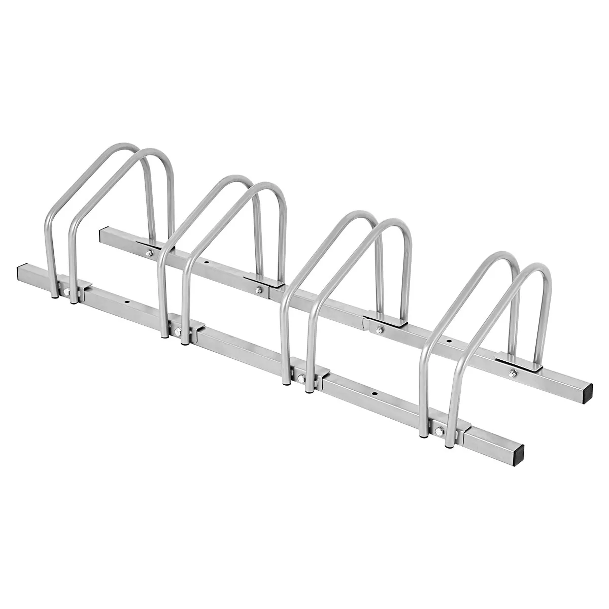 Dviračių stovas 120×32,5×26 cm, sidabrinės spalvos, yra patikima ir funkcionali dviračių laikymo sistema. Pagamintas iš plieno su milteliniu padengimu, jis tinka naudoti tiek patalpose, tiek lauke. Šis dviračių stovas užtikrina stabilumą ir erdvės taupymą laikant iki 4 dviračius.