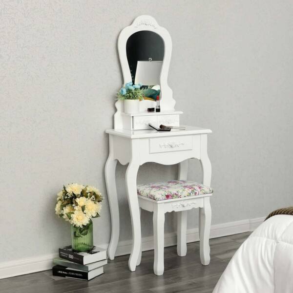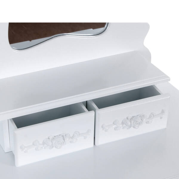 Pristatome Jums kokybišką tualetinį staliuką už neprilygstamą kainą! Šis elegantiškas kosmetinis staliukas su dekoratyvinėmis rožėmis puikiai papildys bet kurios mergaitės miegamąjį. Stalą lengva prižiūrėti, todėl jis ilgai išliks puikios būklės.