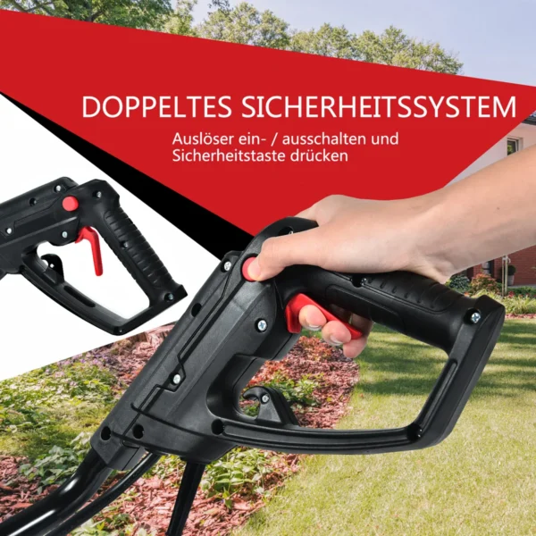- Dviguba saugos sistema su įjungimo/išjungimo jungikliu ir saugos mygtuku užtikrina patikimą apsaugą darbų metu.