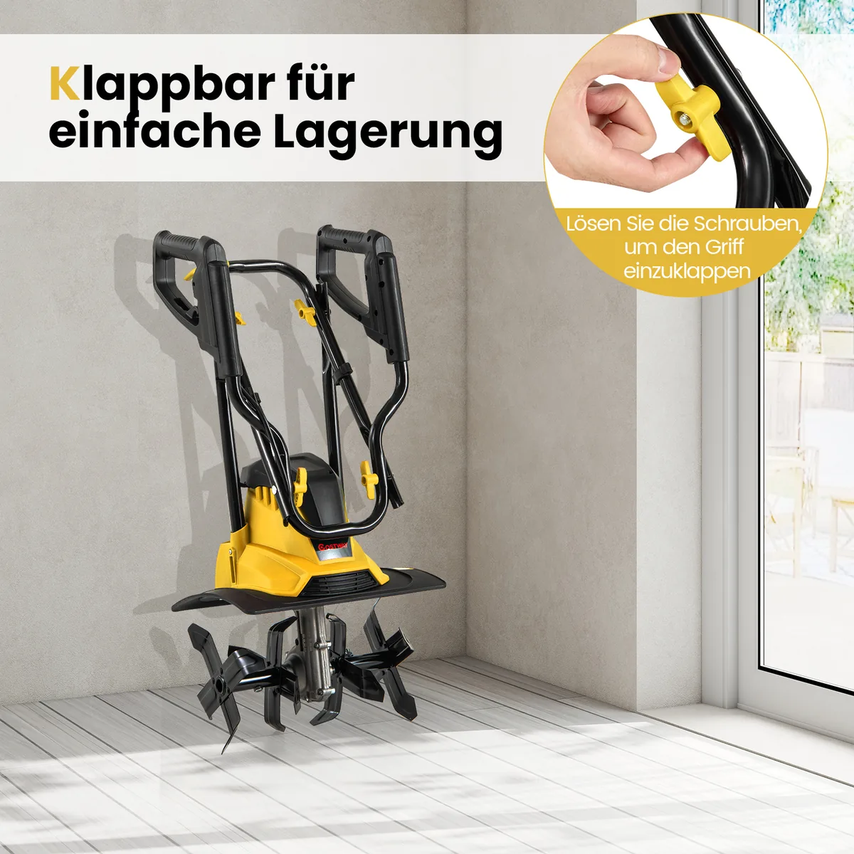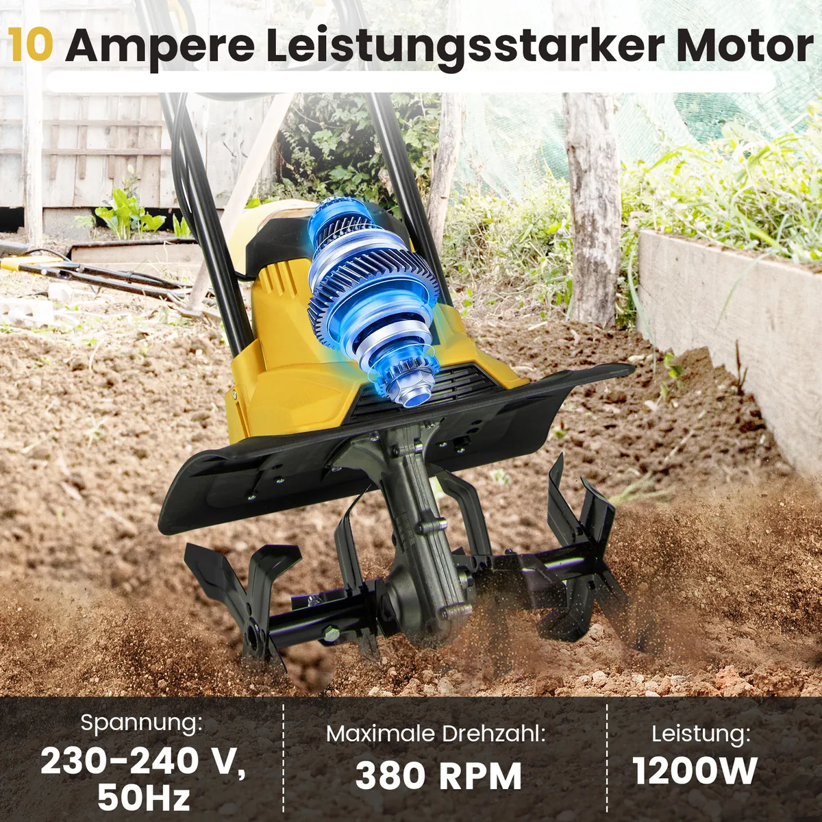 Elektrinis kultivatorius 36,5x24x138 cm juodos ir geltonos spalvos skirtas efektyviam dirvožemio įdirbimui darže ar sode. Su 1200 W galingu varikliu ir keturiais peiliais šis įrankis palengvina sunkius žemės paruošimo darbus. Kultivatoriaus ergonomiška rankena ir saugos funkcijos užtikrina komfortą ir saugumą dirbant.
